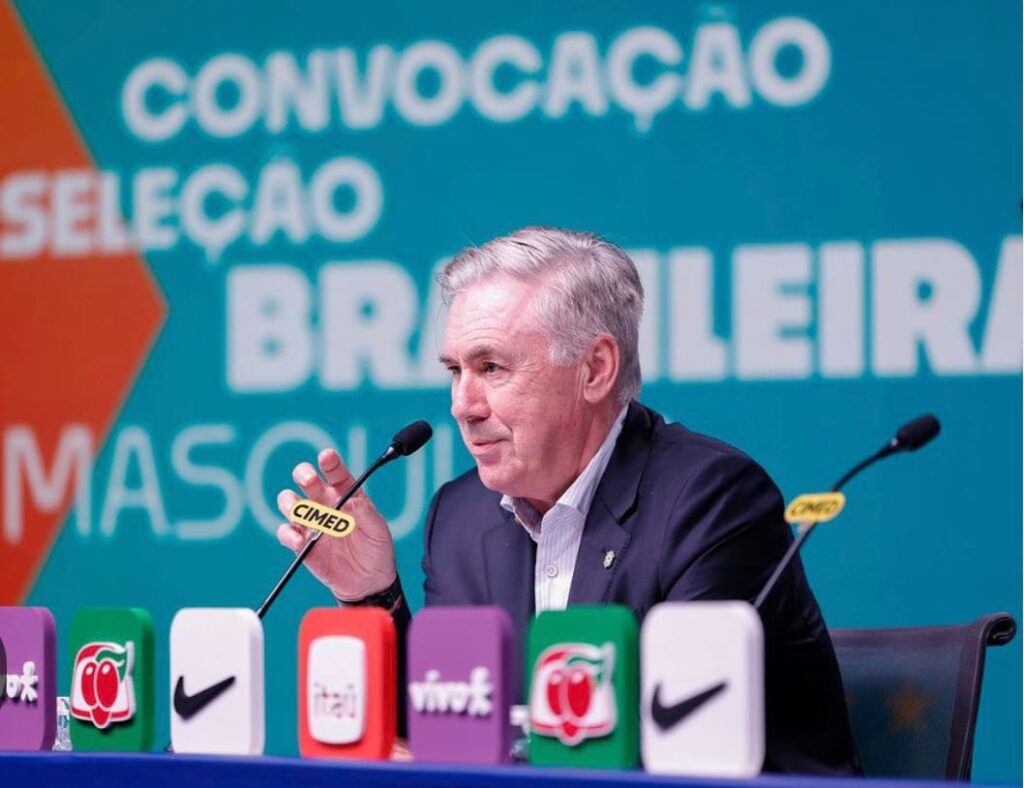 Direto da sede da Confederação Brasileira de Futebol (CBF), o técnico Carlo Ancelotti anunciou a lista de convocados da Seleção Brasileira de Futebol para os amistosos deste mês de março. O Brasil enfrentará a Seleção Francesa de Futebol no dia 26 de março e a Seleção Croata de Futebol no dia 31.