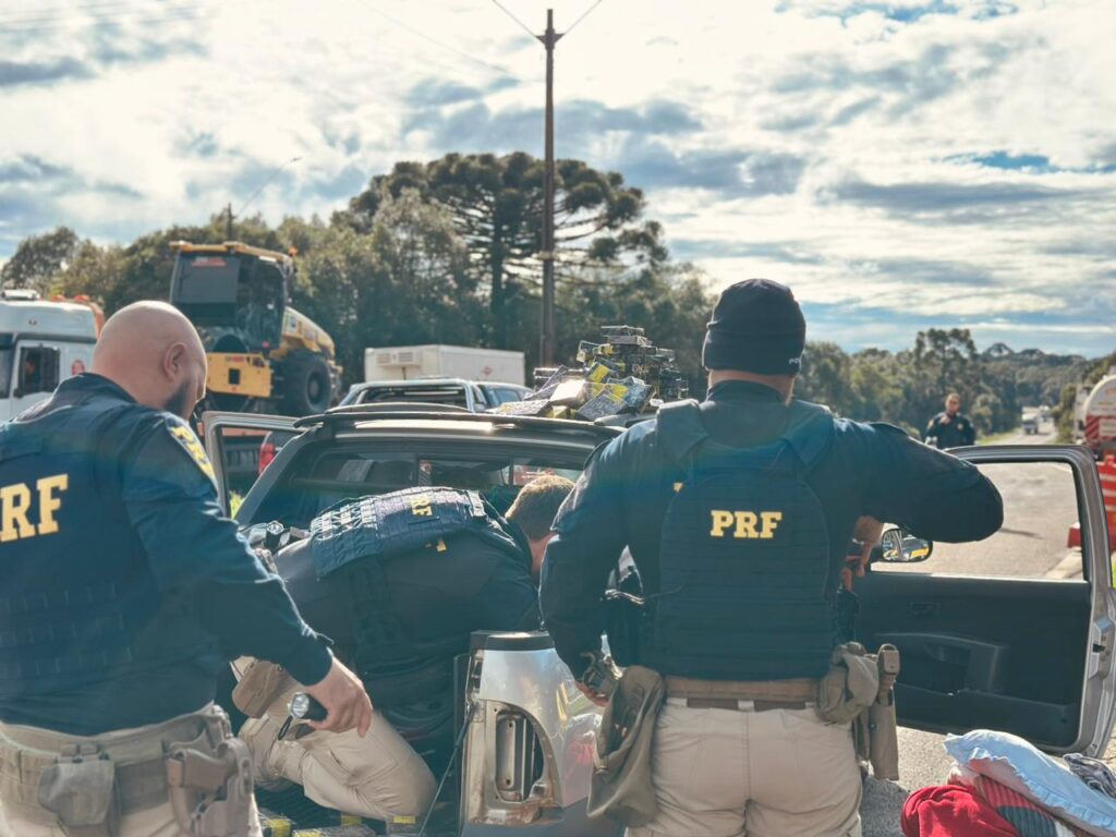 GUARAPUAVA (PR) – O que deveria ser uma viagem em família terminou em delegacia na manhã desta segunda-feira (27). Durante uma fiscalização de rotina no km 339 da BR-277, agentes da Polícia Rodoviária Federal (PRF) prenderam mãe e filho que transportavam centenas de aparelhos celulares de forma ilegal. A carga, avaliada em cifras milionárias, estava camuflada em compartimentos ocultos de uma picape Fiat Strada.
